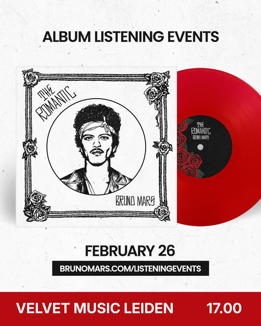 BRUNO MARS is terug van eigenlijk nooit echt weggeweest met THE ROMANTIC, zijn vierde soloplaat. Wij mogen 'm als een van de eersten in Nederland laten horen én alvast verkopen op DONDERDAG 26 FEBRUARI OM 17.00. En... we hebben een boel goodies om bij aanschaf mee te geven. Zolang de voorraad strekt.