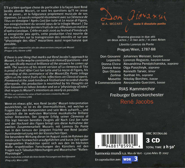 Wolfgang Amadeus Mozart - Johannes Weisser ∙ Lorenzo Regazzo ∙ Alexandrina Pendatchanska ∙ Olga Pasichnyk ∙ Kenneth Tarver ∙ Sunhae Im ∙ Nikolay Borchev ∙ Alessandro Guerzoni ∙ RIAS-Kammercho - Don Giovanni (tweedehands CD)