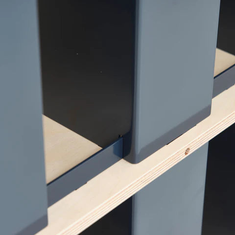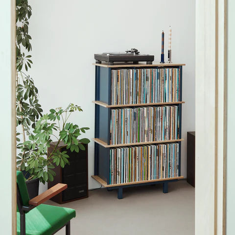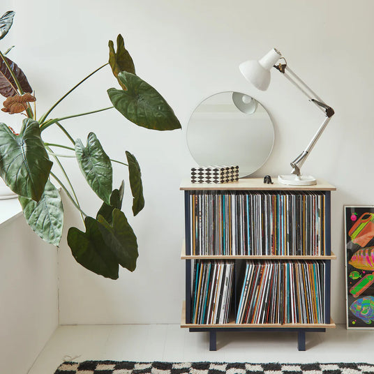 De berkenhouten planken en aluminium panelen zorgen voor een sterke constructie die toch heel licht oogt. Met handige tabbladen waarmee je je platen eenvoudig kunt organiseren. Ons modulaire systeem groeit mee met je collectie, zodat je in de loop der tijd extra lagen kunt toevoegen om je groeiende verzameling een plek te geven.